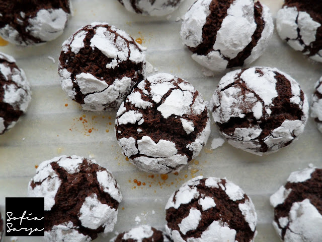 Estas galletas son muy similares a los brownies, con una superficie crujiente y el interior jugoso. El aspecto quebrado de las galletas es muy fácil de obtener, y el azúcar que las recubre les da el dulzor justo que necesitan.
